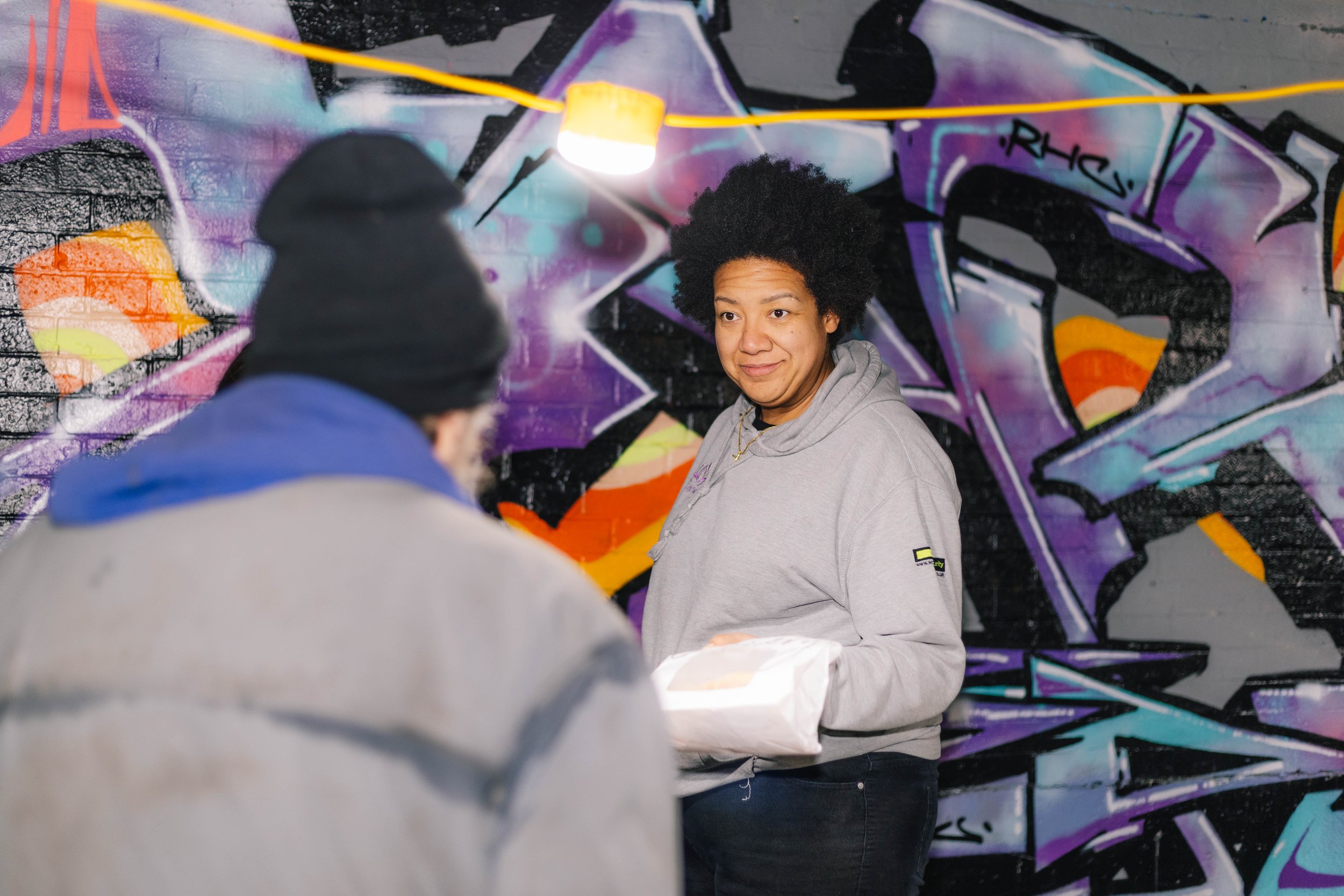 At each outreach, we provide freshly prepared hot meals, tea and coffee, and essential groceries.
